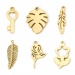 3 Stueck 304 Edelstahl Flora Kollektion Charms Blaetter Vergoldet Hohl 13mm x 15mm