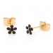 1 Pair Vacuum Plating 316 Stainless Steel Stylish Ear Post Stud Earrings Gold Plated Black Glitter Flower Enamel 6mm Dia., Post/ Wire Size: (21 gauge)